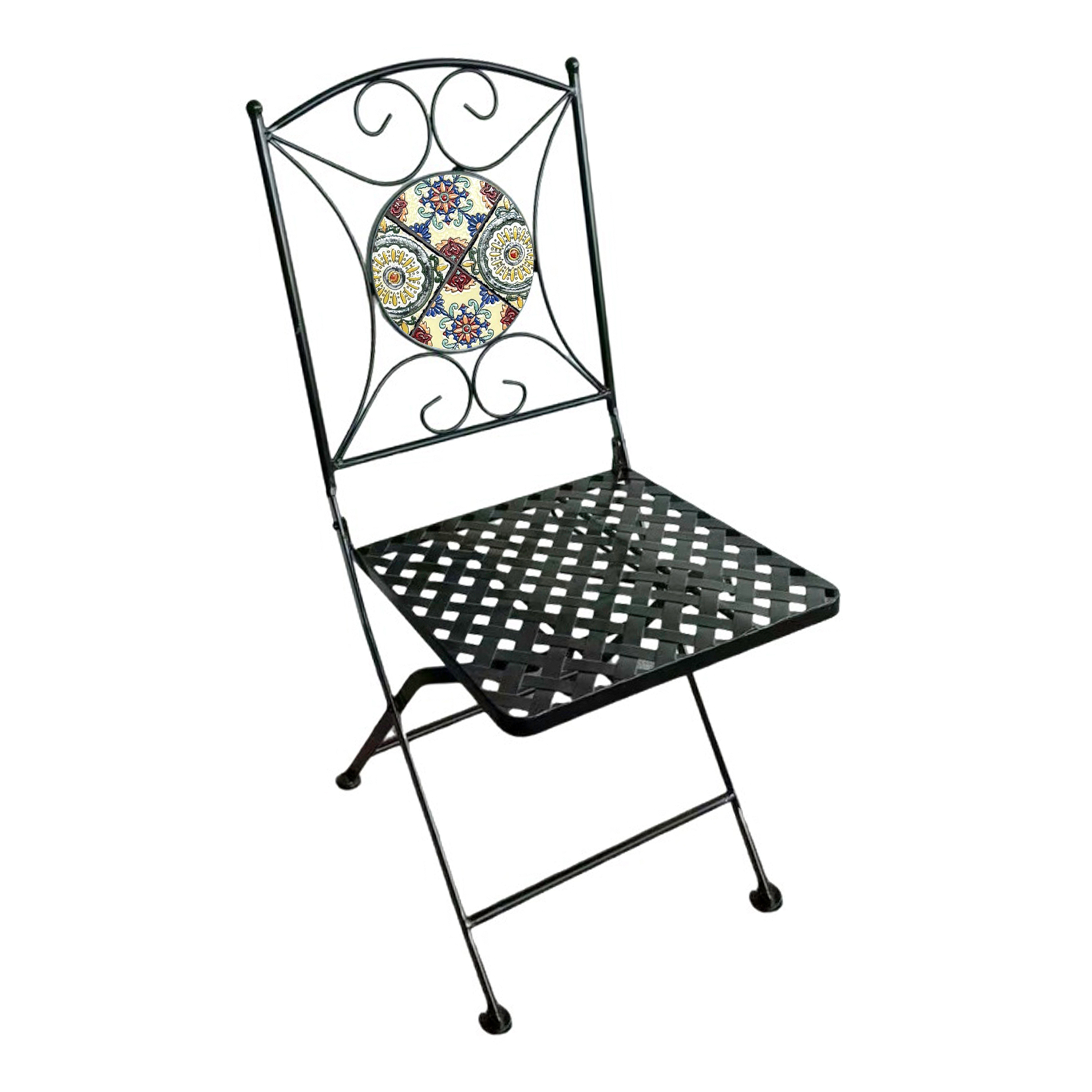 Het gepoedercoate metalen frame is niet alleen stabiel maar ook duurzaam. Het tafelblad en de stoelen zijn met de hand ingelegd met keramische tegels in een mozaïek look. De stoelen hebben een zithoogte van 46 cm en een draagcapaciteit van maximaal 150 kg per stoel. Dankzij de rugleuning in de stoelen biedt deze bistro-set niet alleen stijl maar ook optimaal comfort.