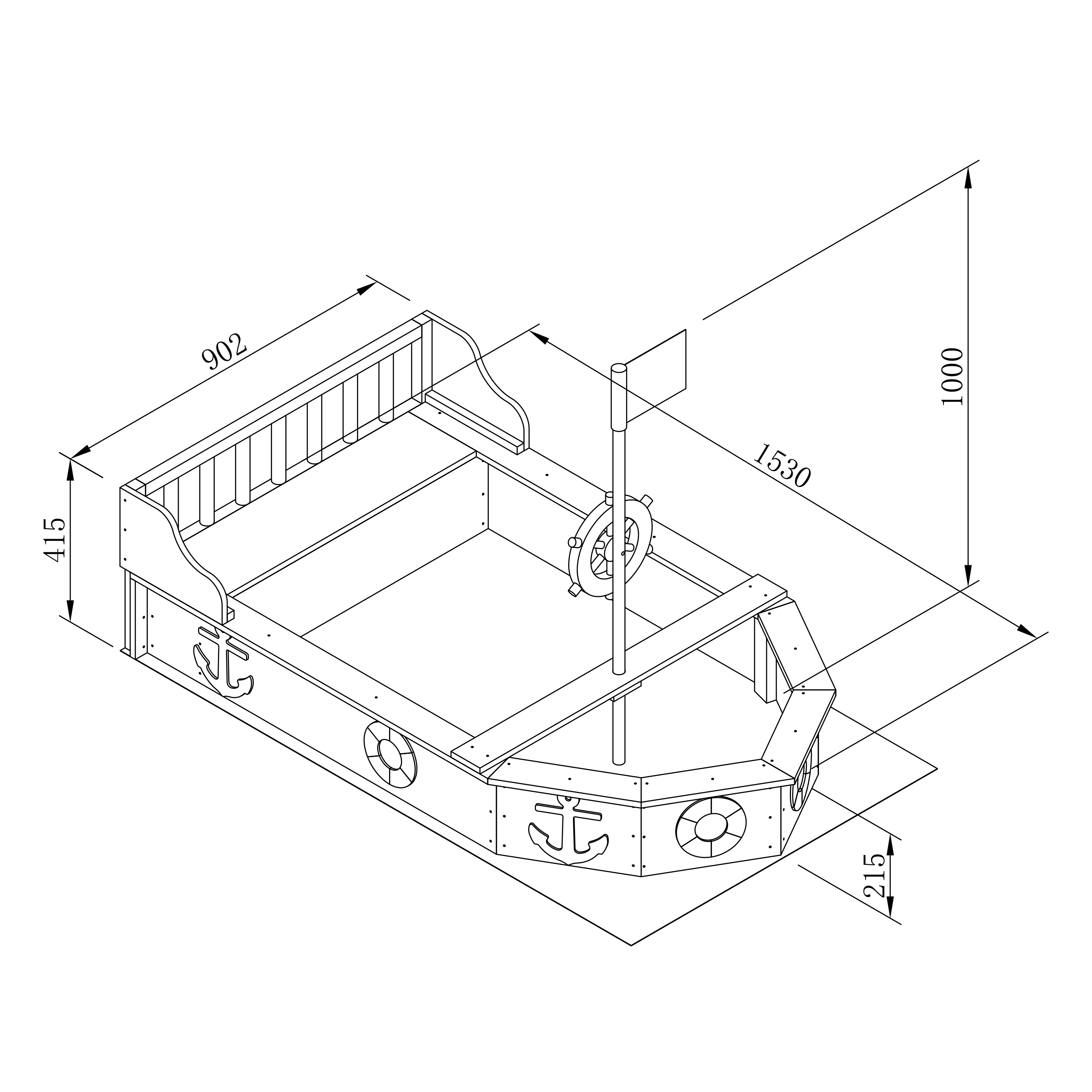 - Drehbares Schiffsruder am Mast, damit dein Kind ein echter Kapitän sein kann.