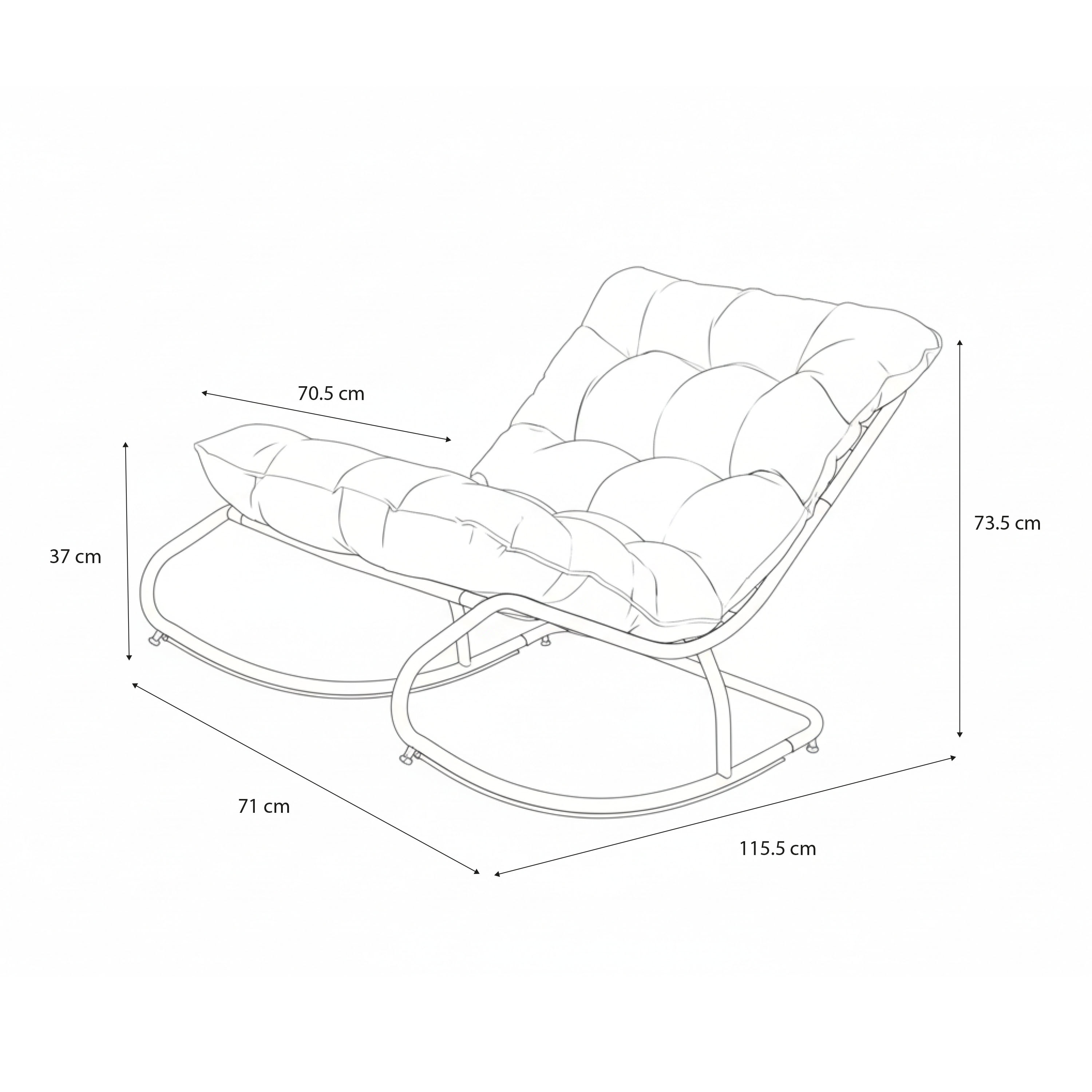 Der Ruby Schaukelstuhl wurde für maximalen Komfort entworfen. Die großzügige Sitztiefe von 70,5 cm und die angenehme Sitzhöhe von 37 cm sorgen für eine entspannte Sitzhaltung. Die 15 cm dicken Olefin-Kissen mit Schaumstofffüllung bieten eine weiche Unterstützung, sodass du dich vollkommen entspannen kannst.
