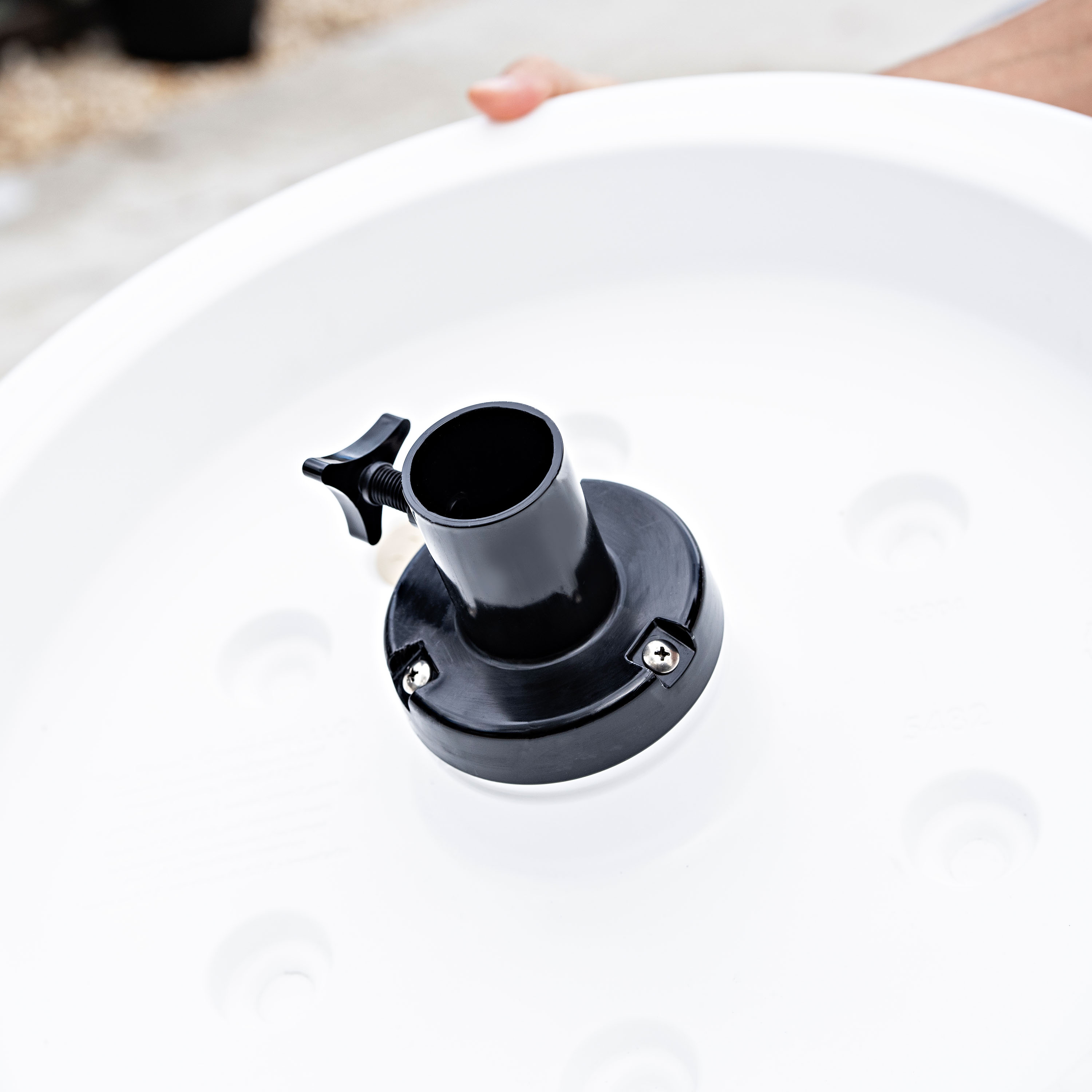 Für zusätzliche Stabilität kannst du den Bereich rund um den Stauraum mit Wasser füllen. In Kombination mit dem wassergefüllten Fuß bleibt der Tisch stabil an seinem Platz, sowohl im als auch außerhalb des Wassers. So kannst du unbeschwert genießen, ohne dass sich der Tisch bewegt.