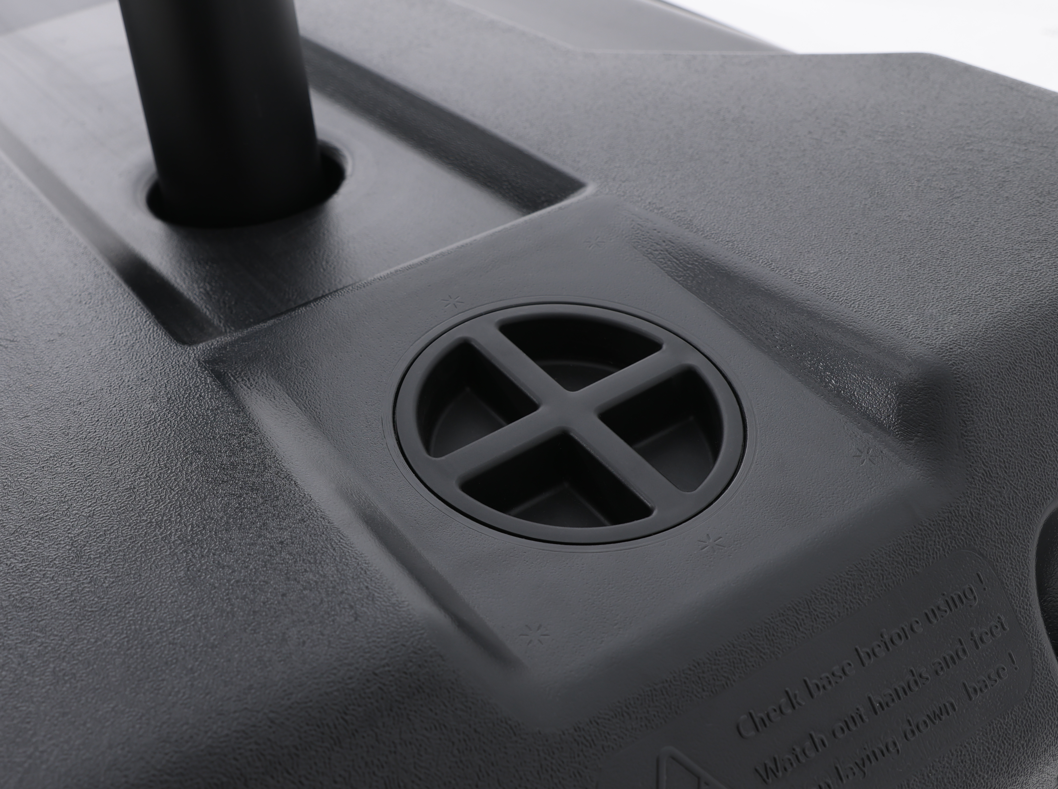 - The base can be stabilized with 128 liters of water or 150 kg of sand.