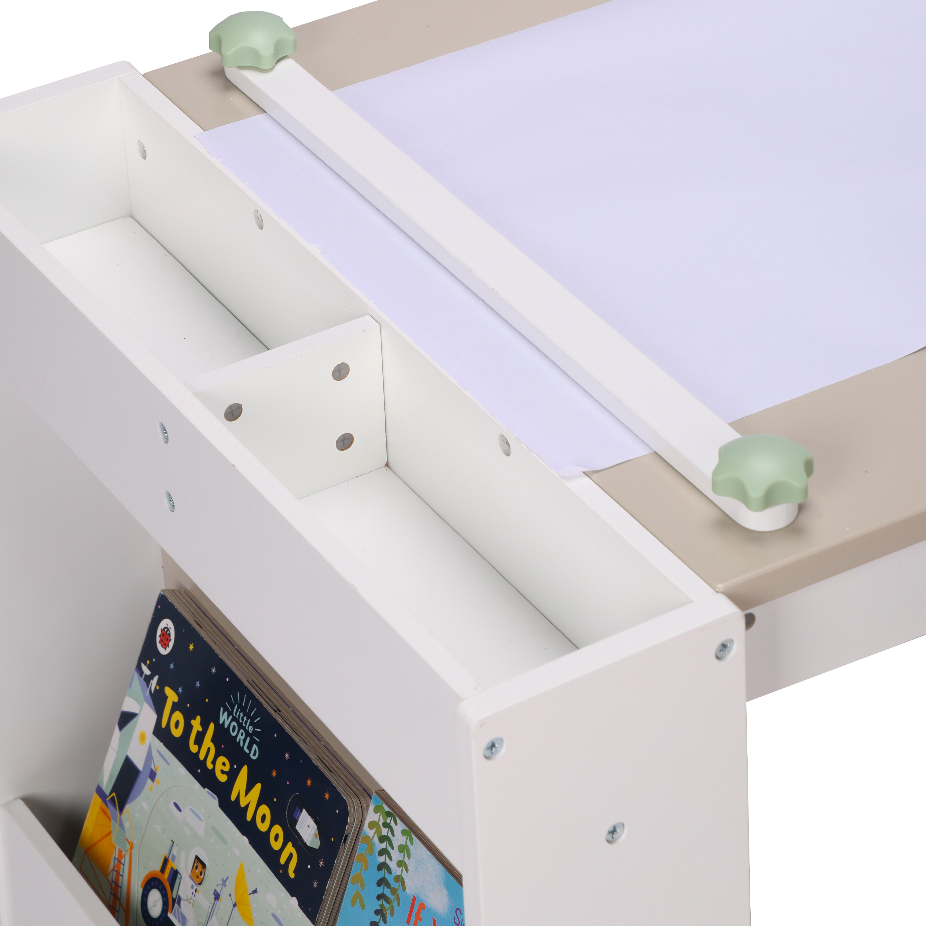 Olivia is not only fun, but also practical. With plenty of storage space and a bookshelf underneath, there’s lots of room to neatly store all craft supplies and favourite storybooks. Everything stays organised and within reach.