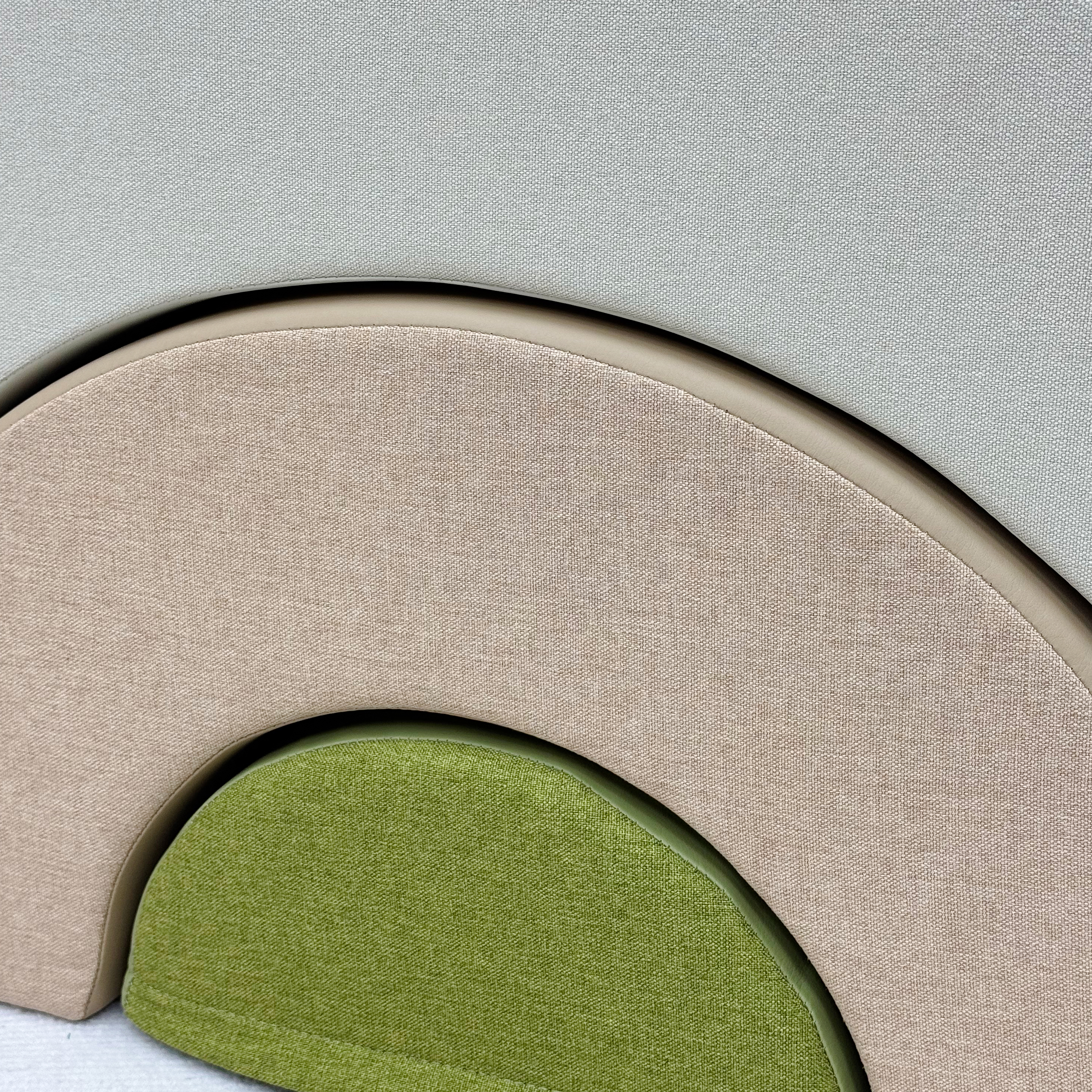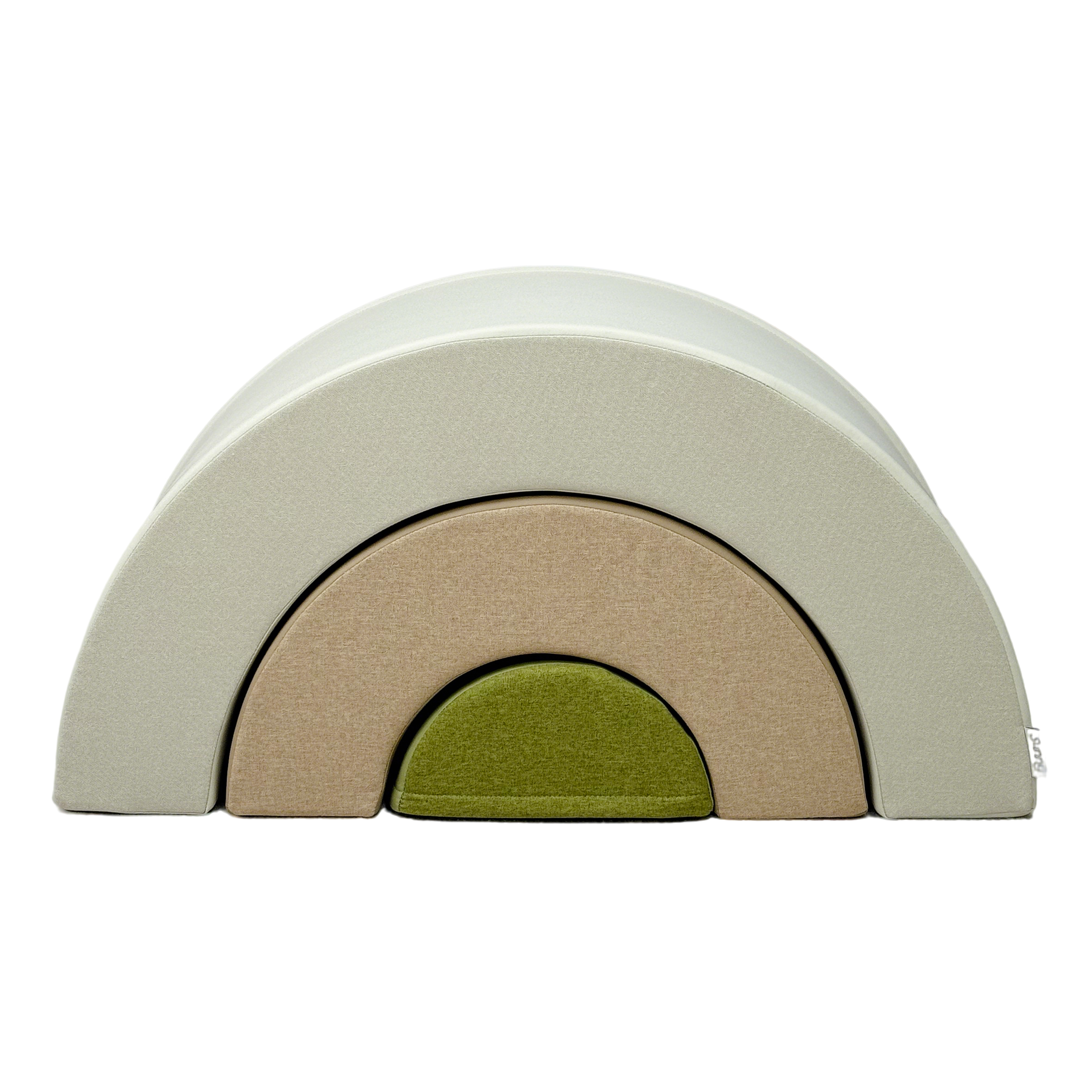 - Set of 3 rainbow-shaped foam blocks in soft natural colours.