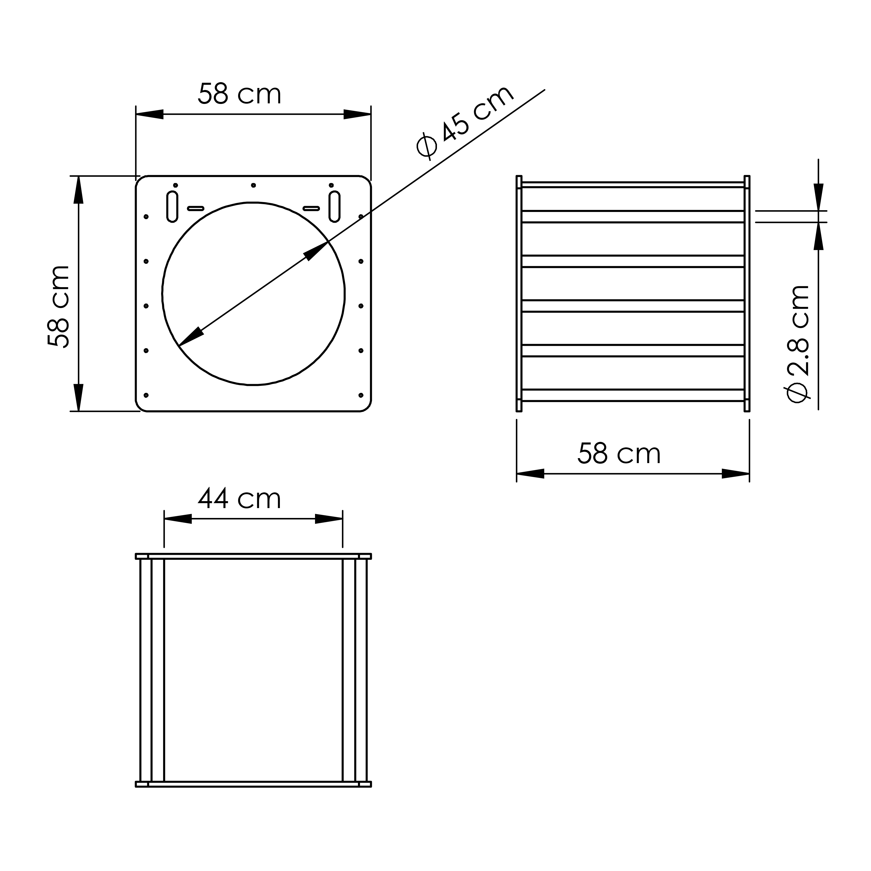 LxWxH: 58 x 58 x 58 cm.