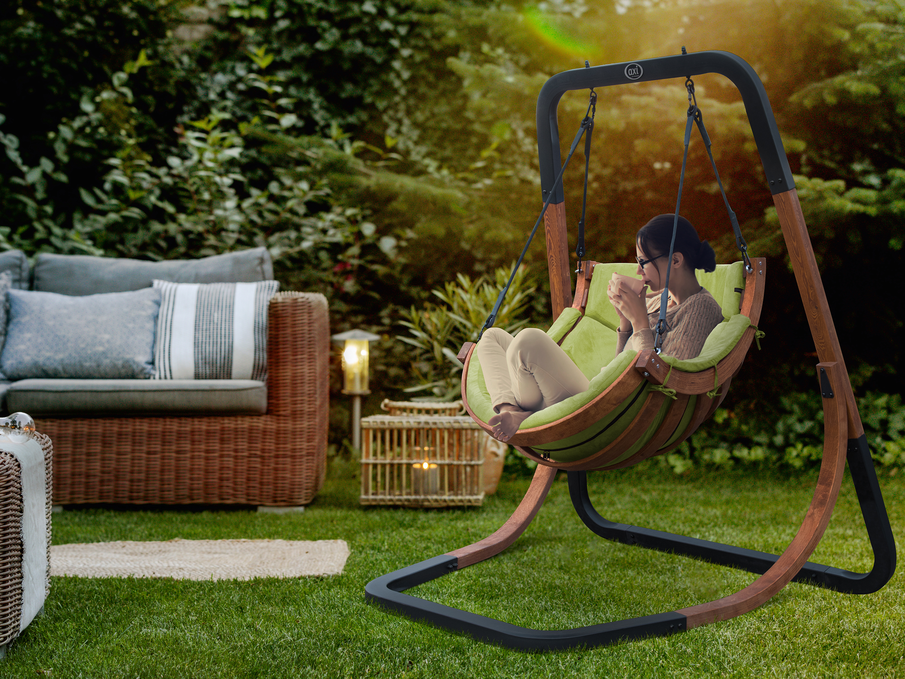 Capri Chaise suspendue sur pied en bois - Vert