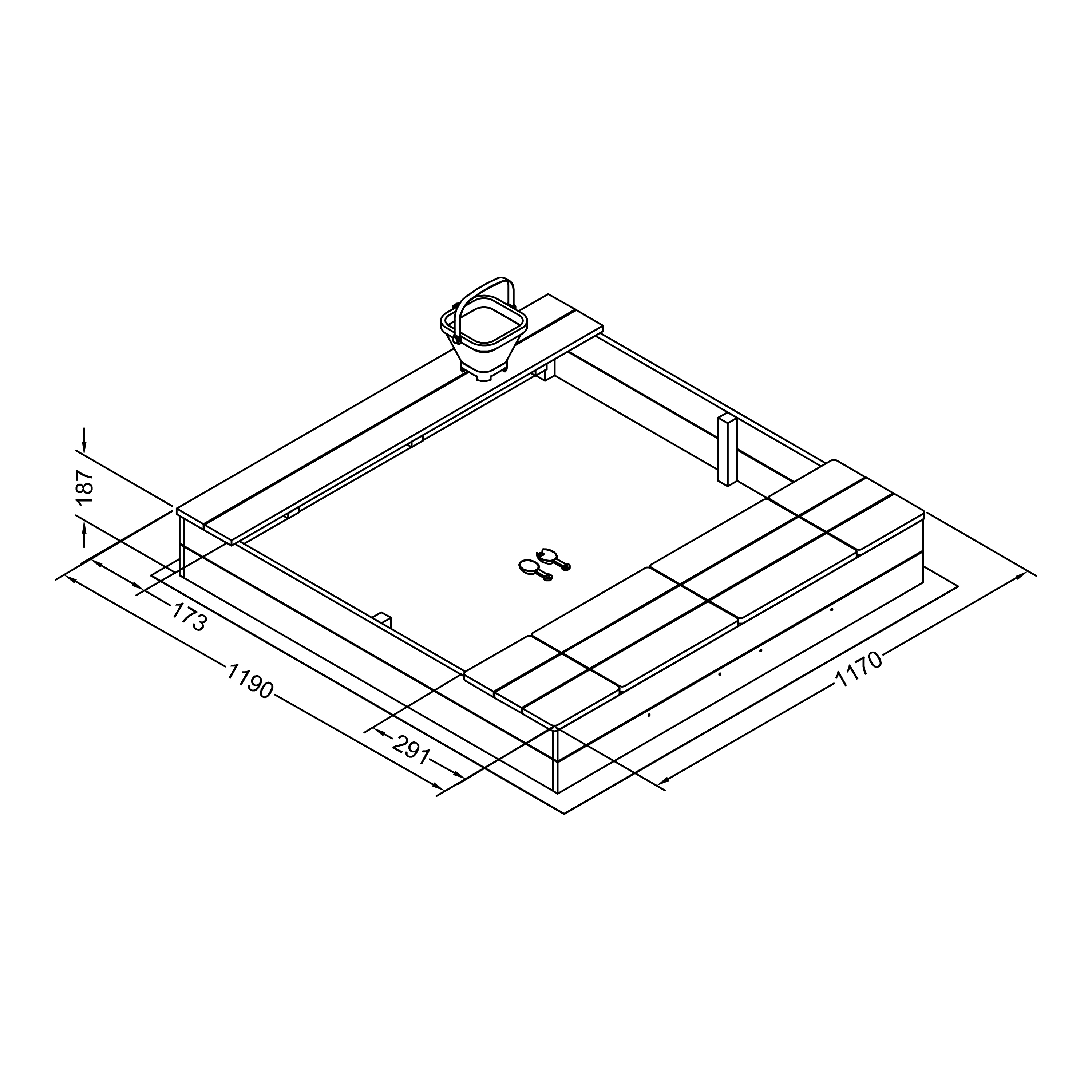Dimensions (LxLxH) : 119 x 117 x 18,7 cm.