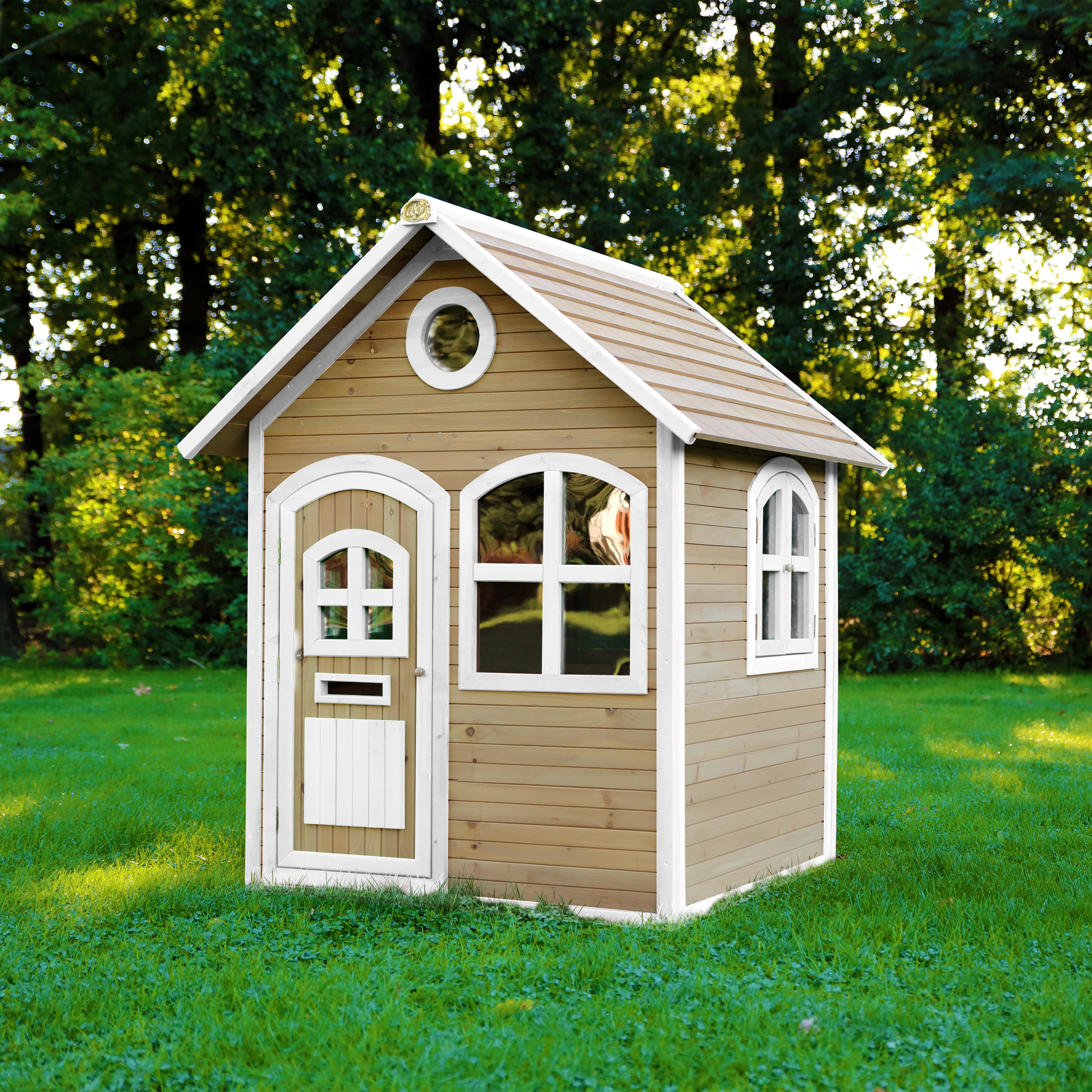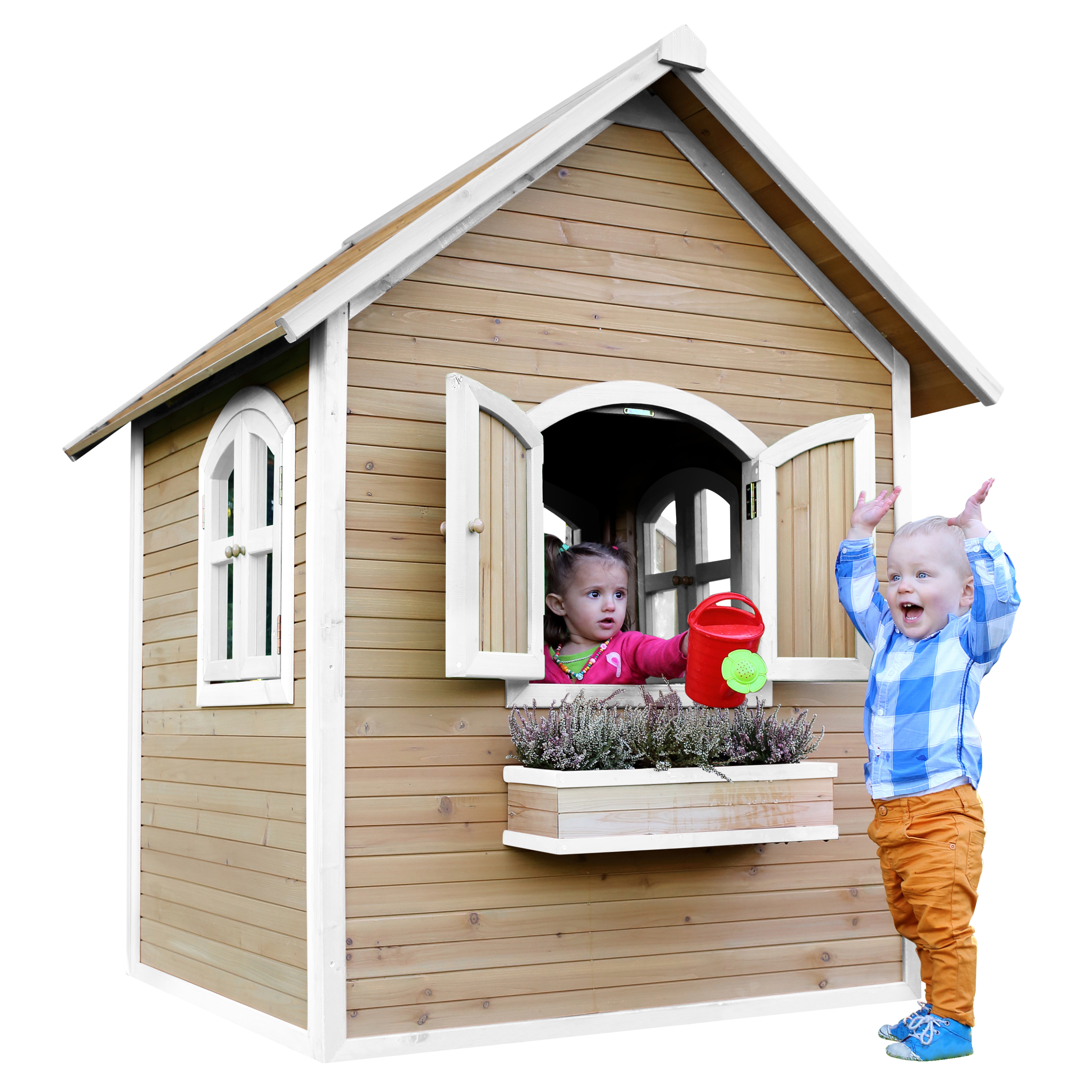 Vous voyez déjà vos enfants assis au soleil sur la véranda ? Avec la maisonnette en bois Jesse de chez AXI aux couleurs marron et vert, ils peuvent profiter de la lecture d'un livre passionnant à l'intérieur de leur propre maisonnette ou sur la véranda ! Jesse est une cabane en bois polyvalente de la série unique Crooked d'AXI. Les couleurs marron/vert sont reconnaissables comme les produits classiques d'AXI qui connaissent un grand succès auprès des petits et des grands depuis des années. Toutes les maisons de jeu de la série Crooked ont une cheminée sur le toit et des fenêtres inclinées. La porte inclinée est dotée d'une petite fenêtre qui permet aux enfants de voir qui se trouve devant la porte sans l'ouvrir. Par beau temps, les enfants peuvent facilement ouvrir les fenêtres et profiter de tout ce qui se passe dehors. Qu'ils referment rapidement les fenêtres lorsqu'il commence à pleuvoir, afin d'être à l'abri et de pouvoir continuer à jouer !