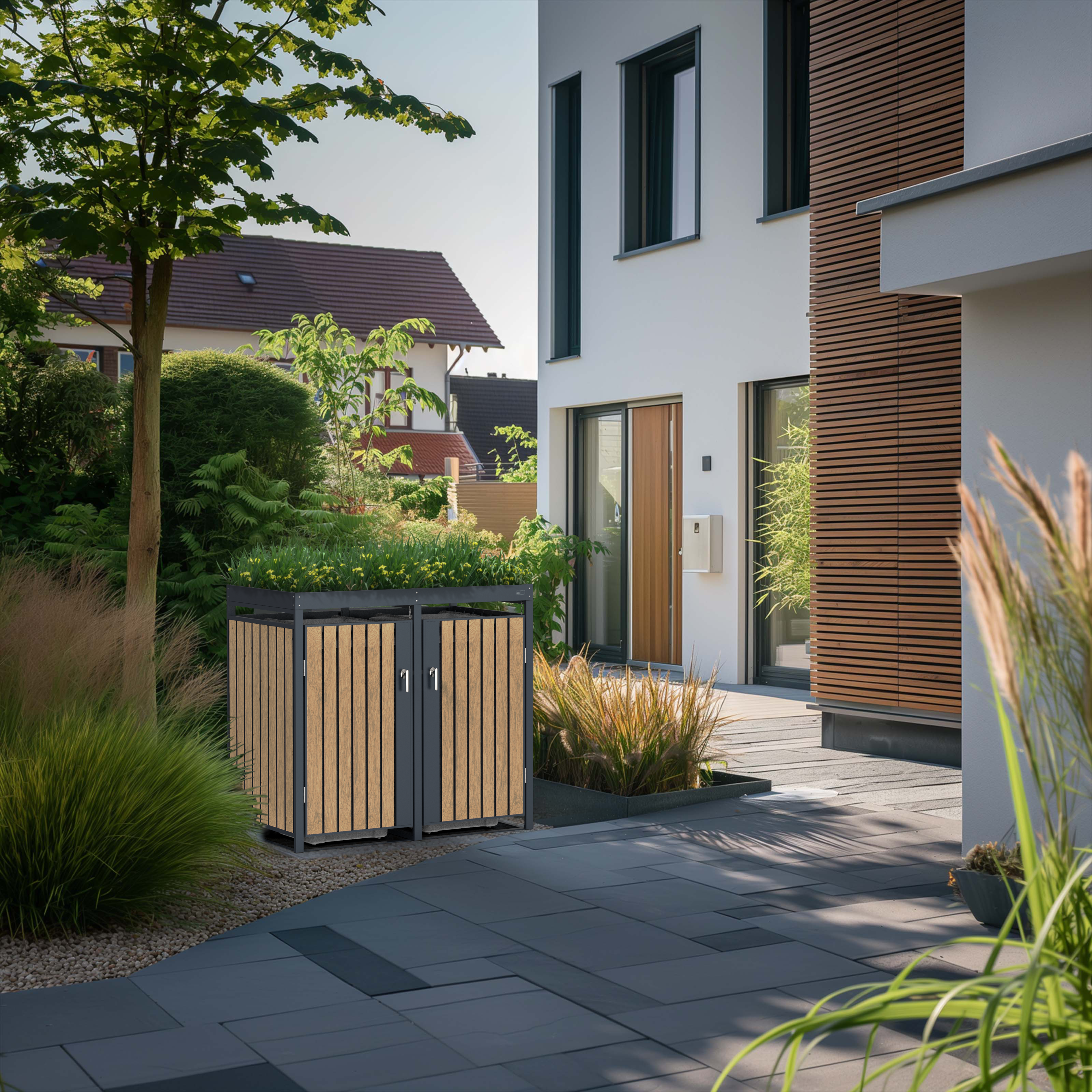 Informations sur le produit "Leon Poubelle en Métal - Anthracite/Aspect Bois 2x 240L"