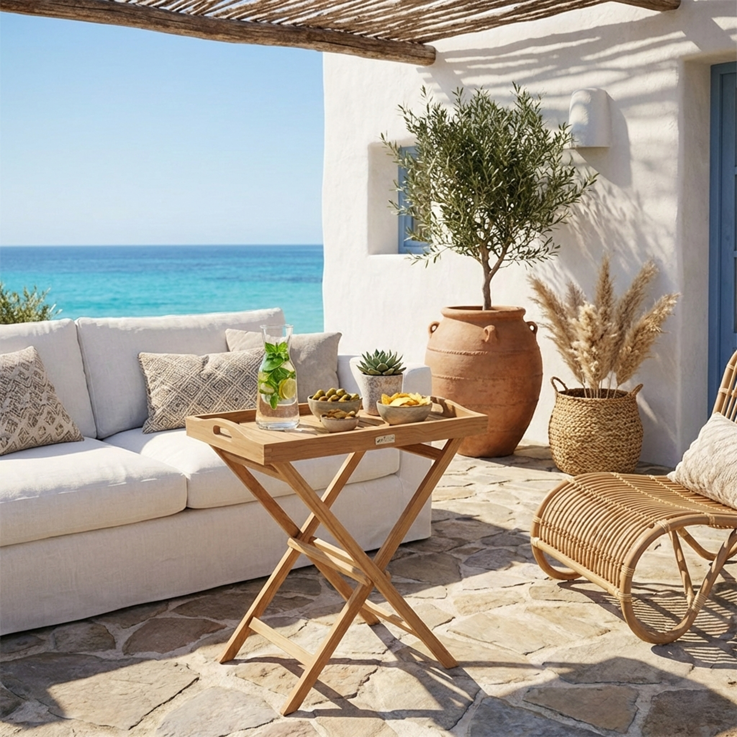 Lora Table d'appoint pliable en teck avec plateau amovible