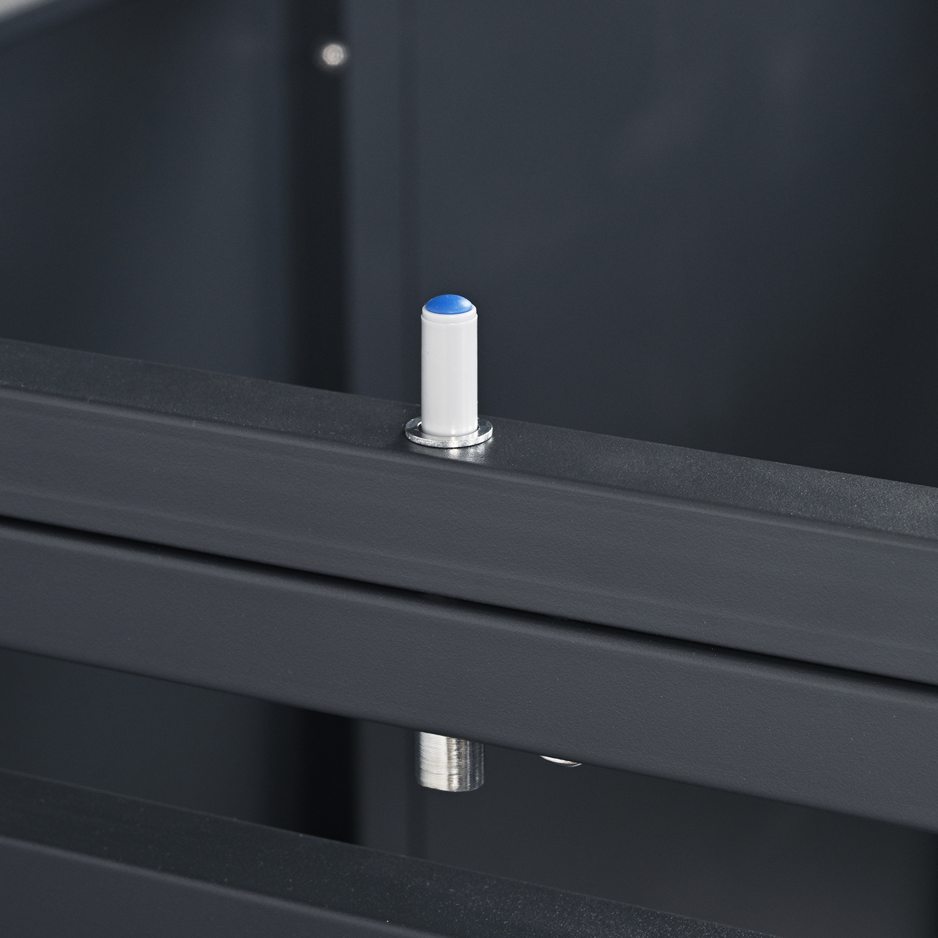 - Acier galvanisé durable avec revêtement en poudre anthracite combiné à une impression aspect bois de chêne.