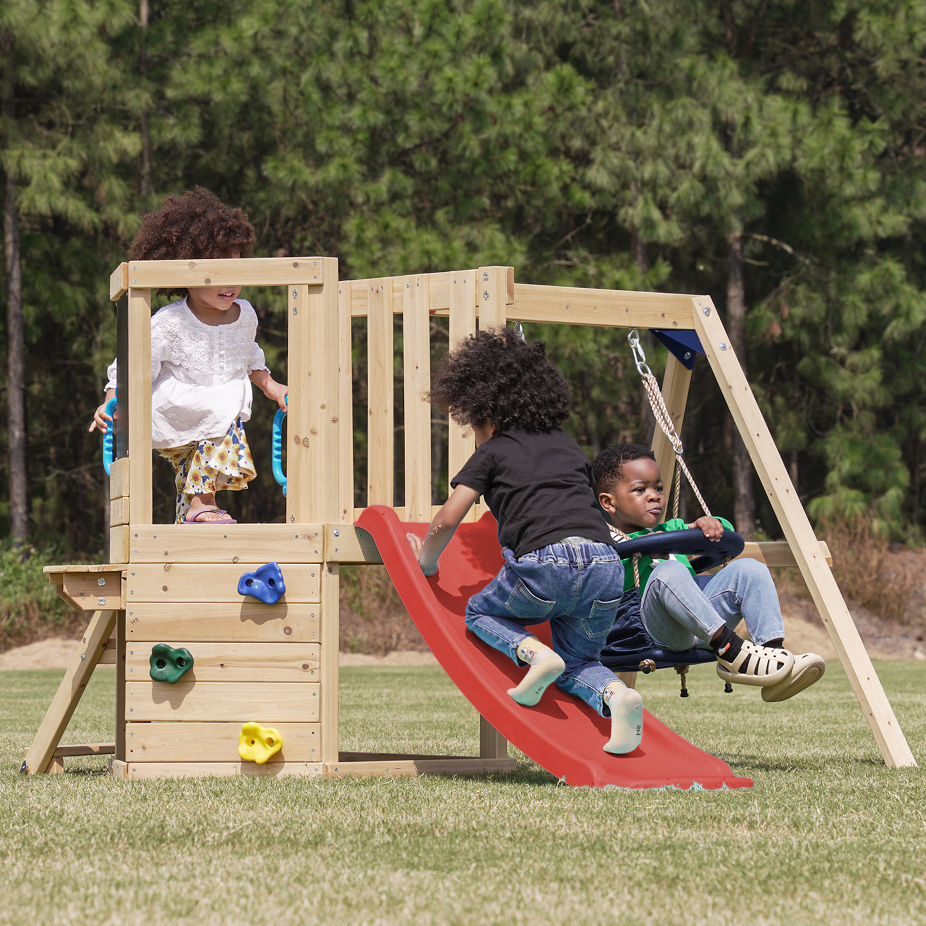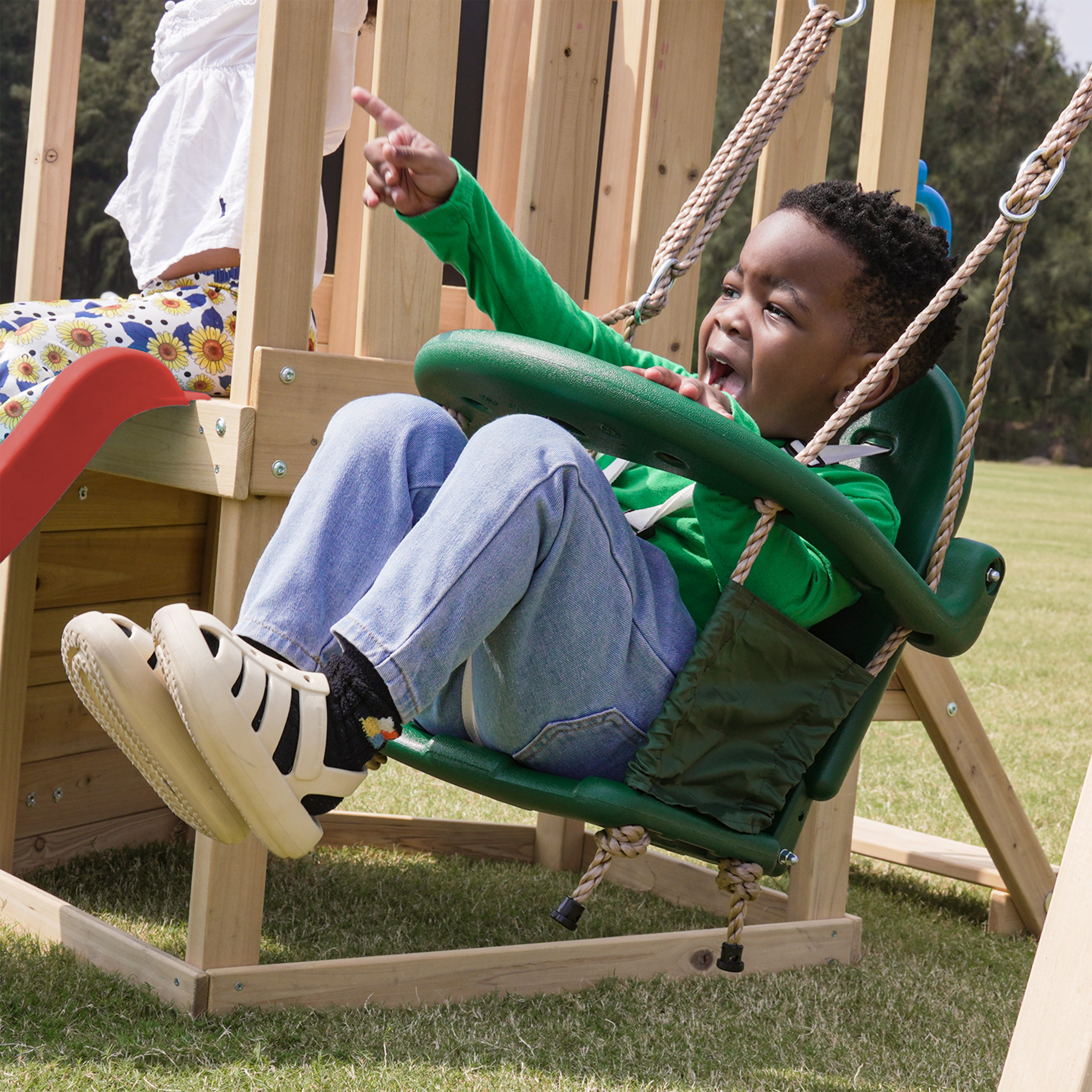 L’aire de jeux AXI Timo Mini avec balançoire pour bébés est une aire de jeux compacte où les jeunes enfants peuvent dépenser leur énergie. Cette aire de jeux polyvalente combine l'escalade, la glissade, la balançoire et le jeu créatif dans un seul design ludique. Idéal pour les enfants à partir de 2 ans qui aiment explorer et jouer dehors dans leur propre jardin. L’aire de jeux est également équipée d'une balançoire pour bébés. Celle-ci est parfaite pour les bébés et les tout-petits qui font de la balançoire pour la première fois à l'extérieur. La balançoire pour bébés peut être utilisée sous surveillance pour les enfants à partir de 12 mois.