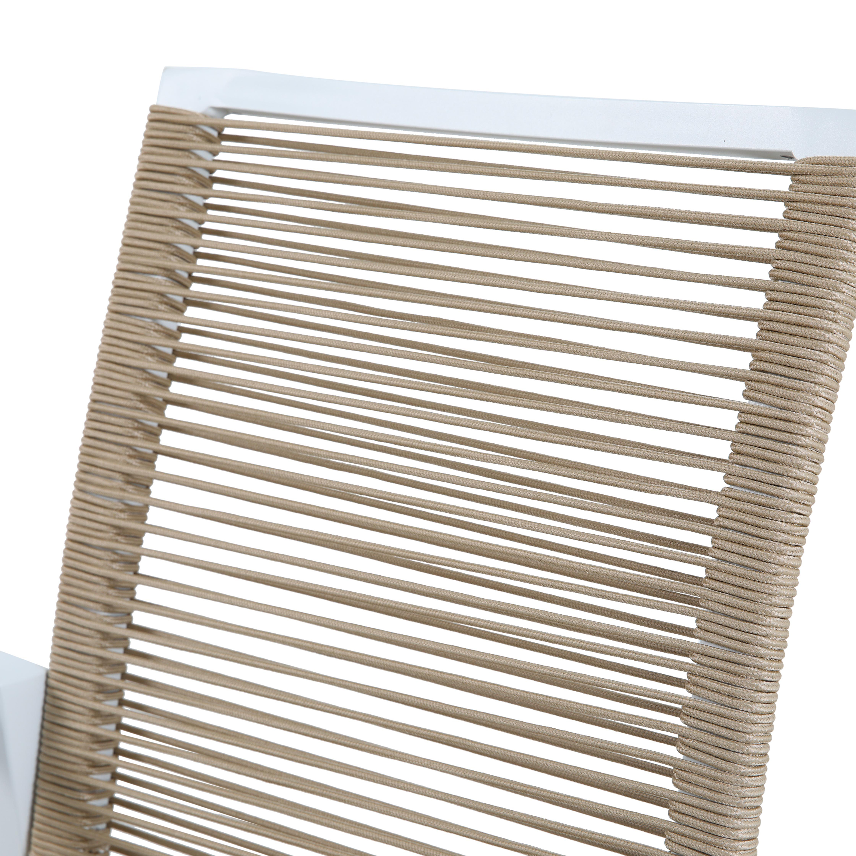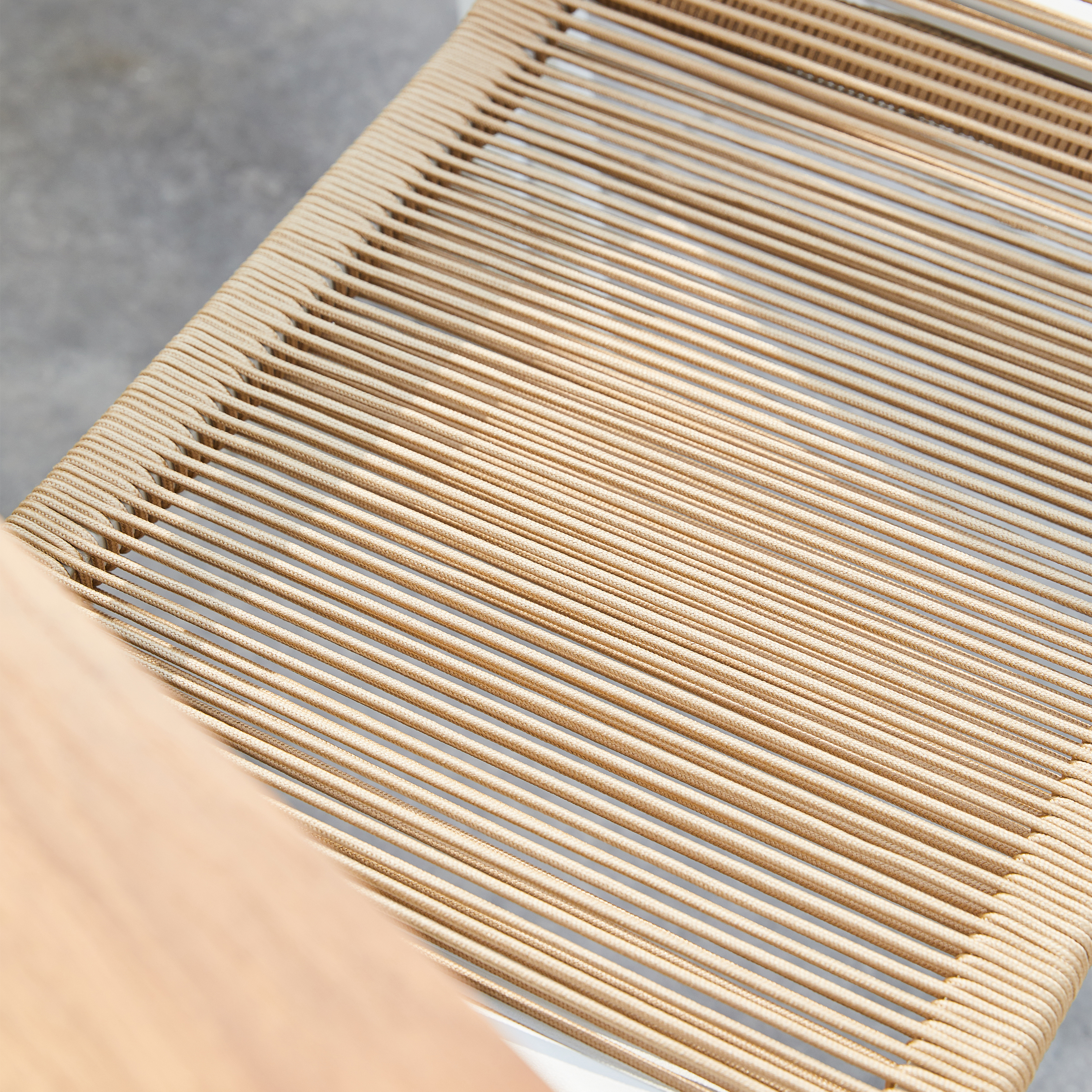 - Les chaises blanches sont munies de cordes en polyester beige à double tissage, ce qui les empêche de s'affaisser.