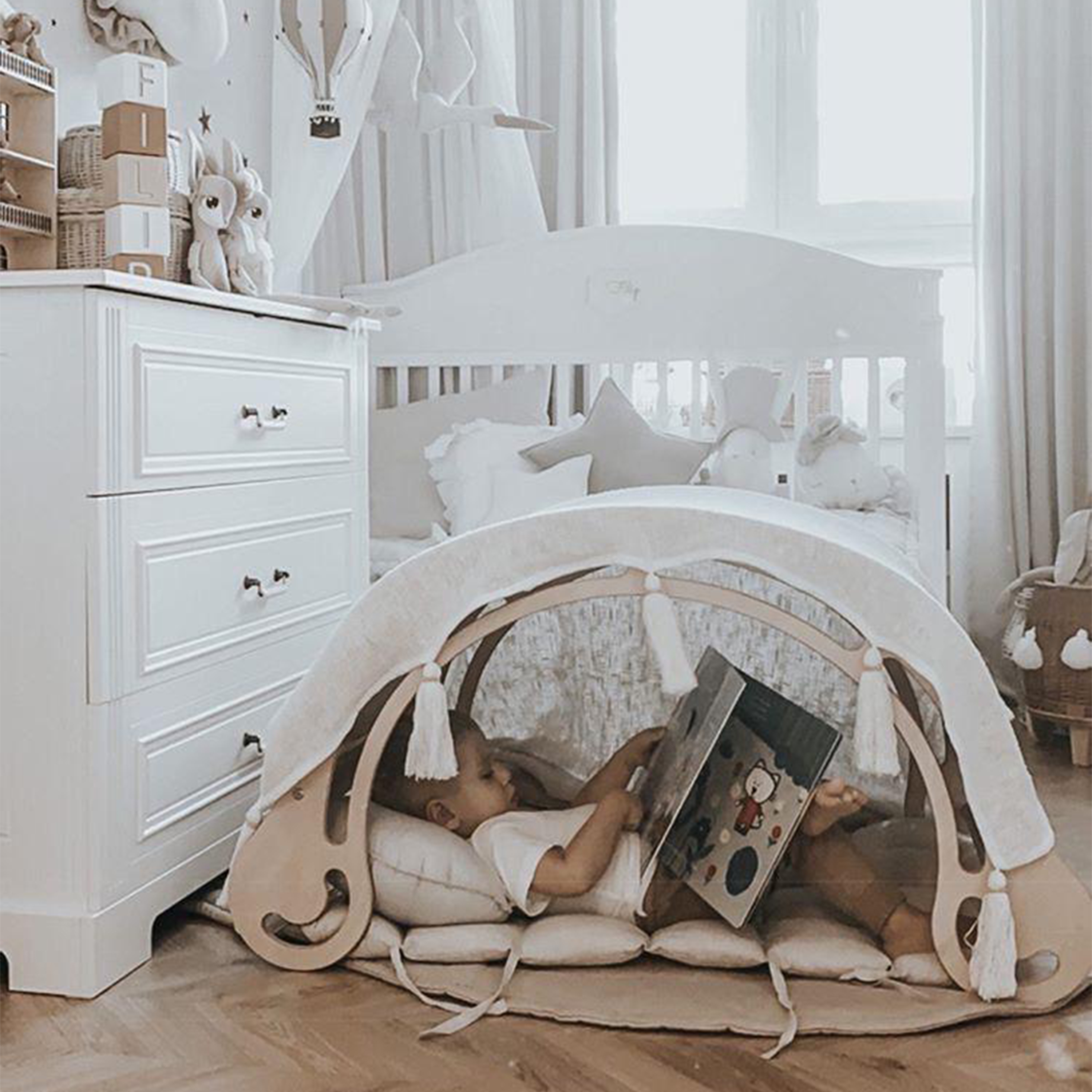 De Klimboog rocker van KateHaa kan gemakkelijk worden uitgebreid met een extra klimwand. Deze extra optie biedt je kindje nog meer speelplezier!