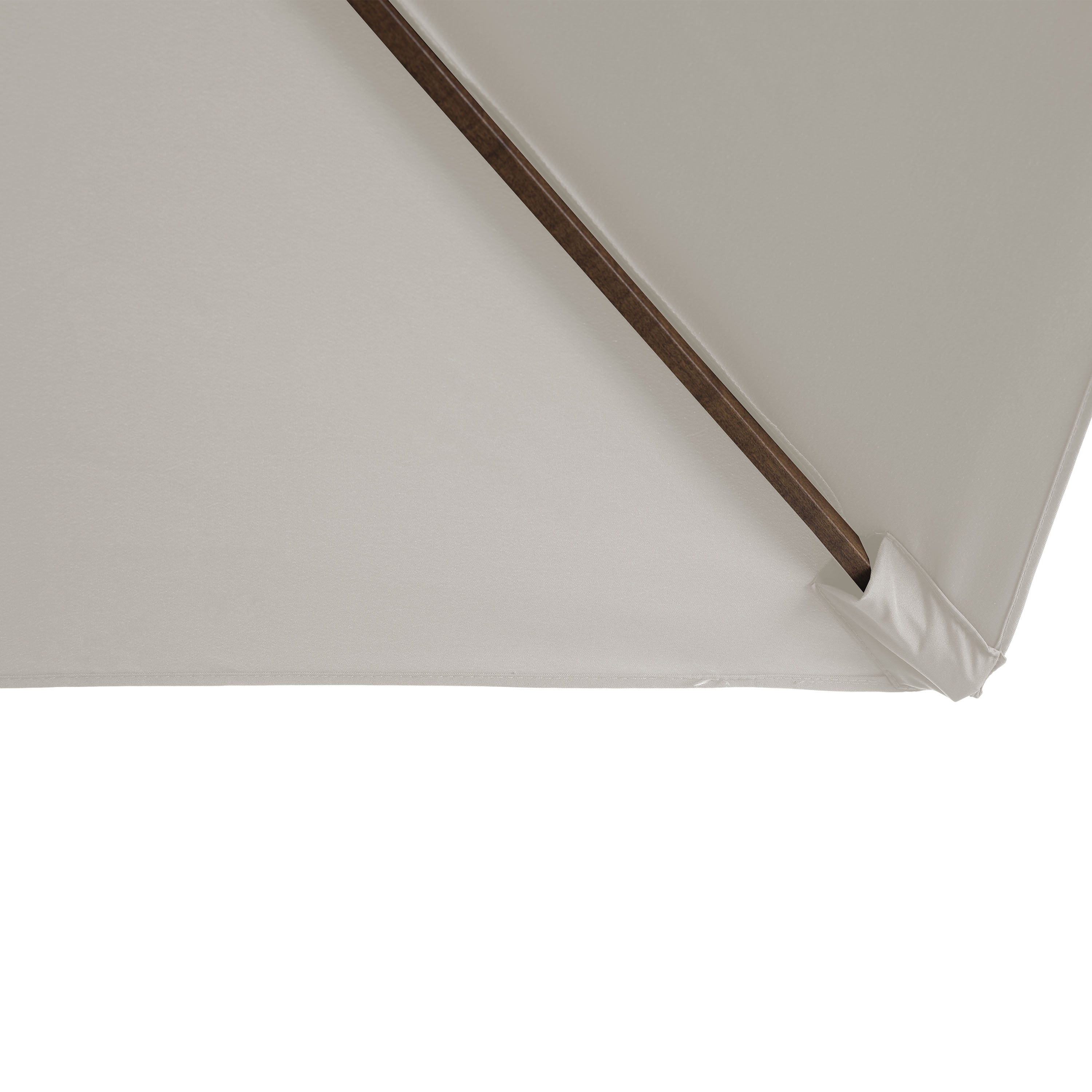 Het 180 grams polyester doek biedt een fijne schaduw en is geschikt voor dagelijks gebruik buitenshuis. Met een UPF-waarde van 30+ beschermt het doek tegen schadelijke UV-straling, zodat je zorgeloos kunt genieten van de zon. De windvanger in de top zorgt ervoor dat wind beter wordt afgevoerd, wat de stabiliteit van de parasol ten goede komt.