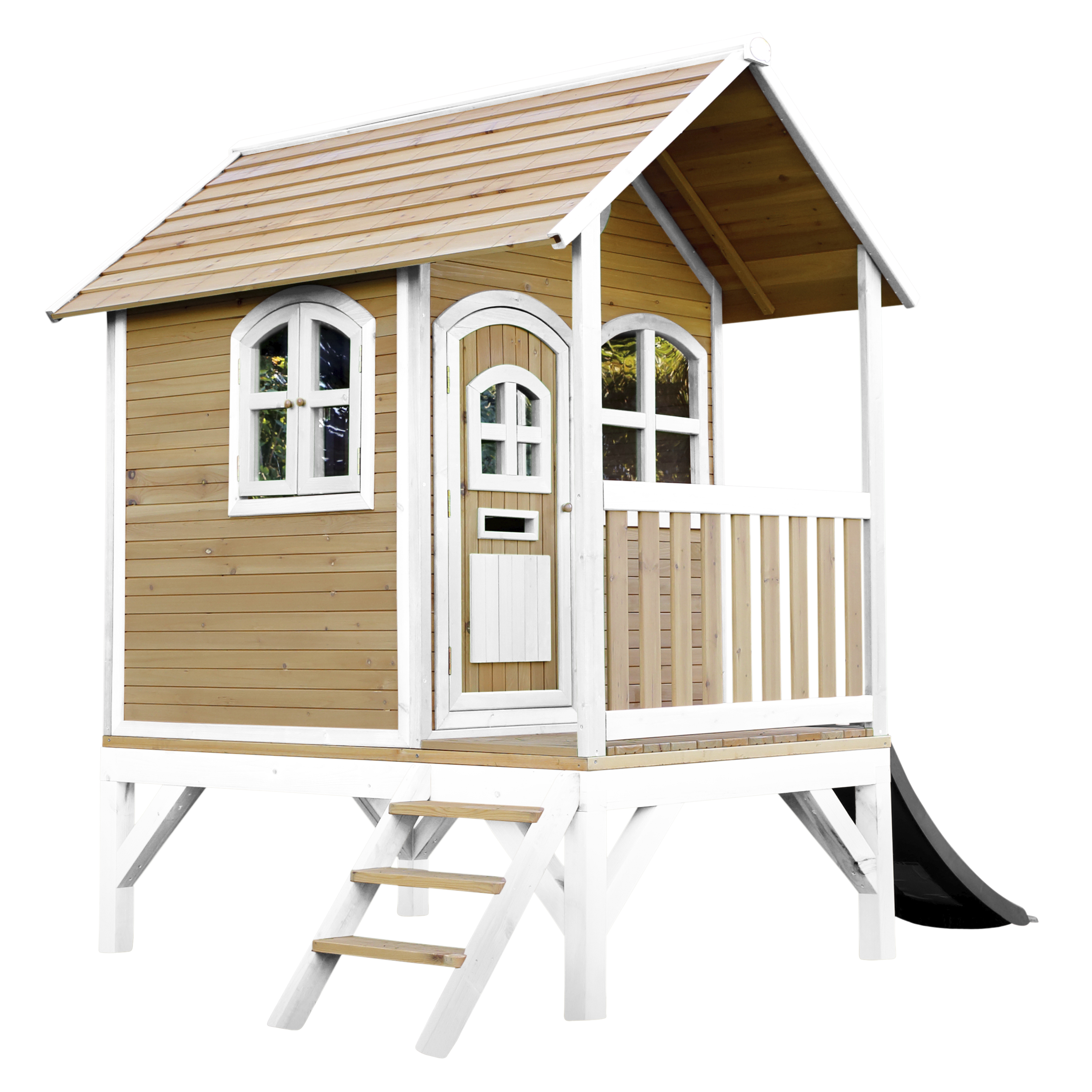 Productinformatie "Tom Speelhuis Bruin/wit - Grijze glijbaan"